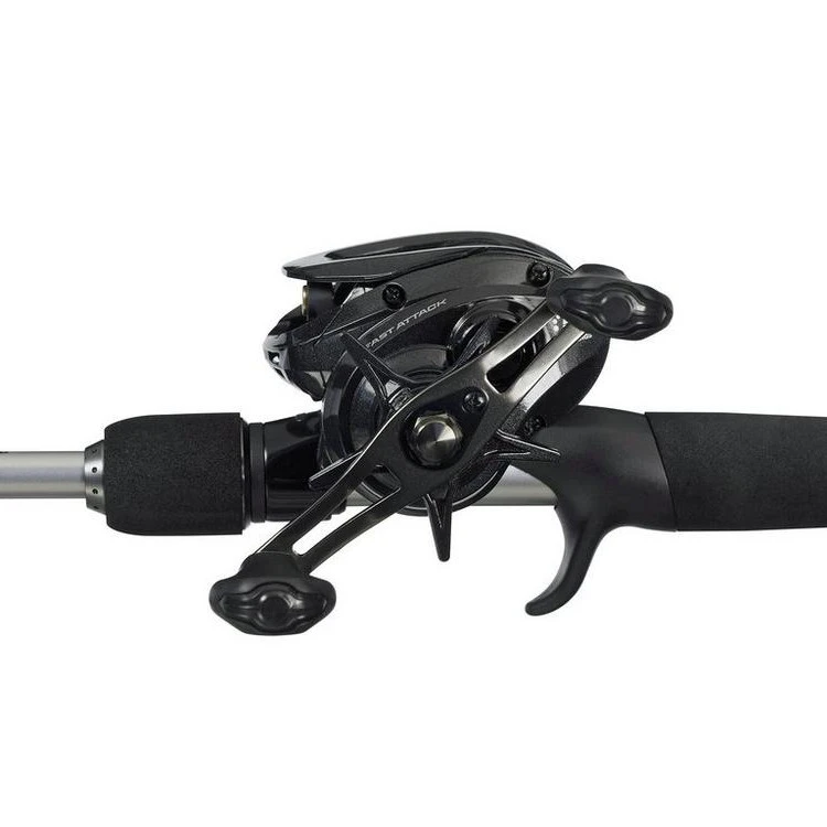 Abu’s Fast attack casting combo gives you a quality well balanced medium weight baitcasting rod and reel package. Paining a high quality rod manufactured from 24T carbon fibre and with stainless steel guides. With a smooth compact low profile baitcasting reel fitted with 4+1 ball bearings and packing Abu’s unique power disc drag and Duragear brass gearing. Carrying a 10-40g casting weight it’s an ideal setup for working soft plastics, hard baits and spoons.