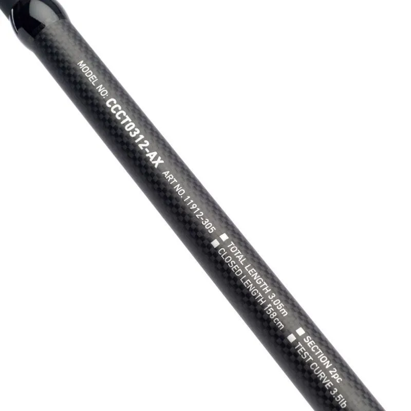 - CCCT2300-AX – Length 12ft – Weight 325g – T/Curve 3.00lb – C/Weight 4oz – Rec Reel Line 10-20lb – Closed Length 188cm