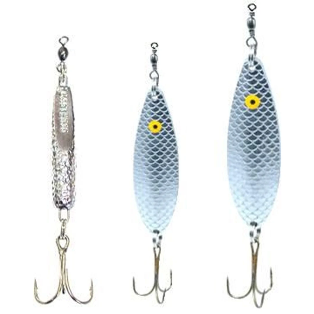 - A 5-piece assorted collection of traditional silver lures that are great value for money for a day’s fishing by the sea!