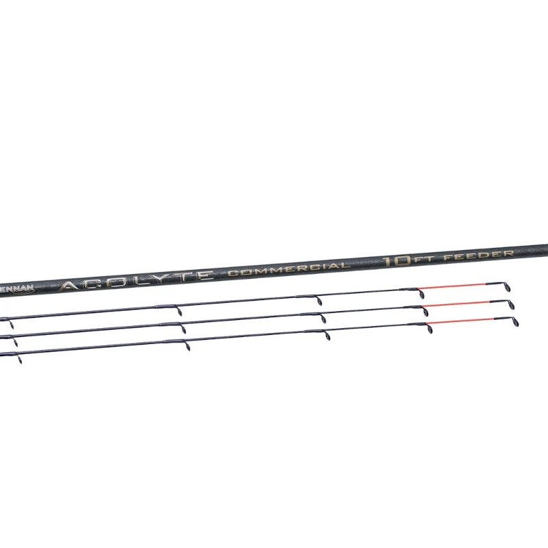 A specialist addition to Drennan’s top of the range Acolyte series. The commercial feeder, available in both 10 and 11ft sizes has been designed to cover multiple scenario’s and will cope with heavy bombs and method feeders as well as registering bites from silvers and F1’s. Manufactured from a super slim and responsive carbon fibre blank fitted with oversized high quality SiC guides, plus a Fuji DPS reel seat. With nice finishing touches like a full cork handle and etched butt cap They come supplied with three tapered carbon quivertip choices carrying an X-soft, Soft and Medium rating