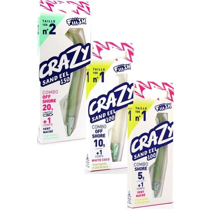 Fiiish Crazy Sandeel Combos arrive ready to fish and also come supplied with a single spare lure body. The ‘upturned’, painted lead head that will fish, hook upwards, to reduce snagging and a flexible body and tail for increased action that is sure to trigger lots of strikes from any predatory fish. The larger 20g sizes also feature an internal rattle for even more attraction.