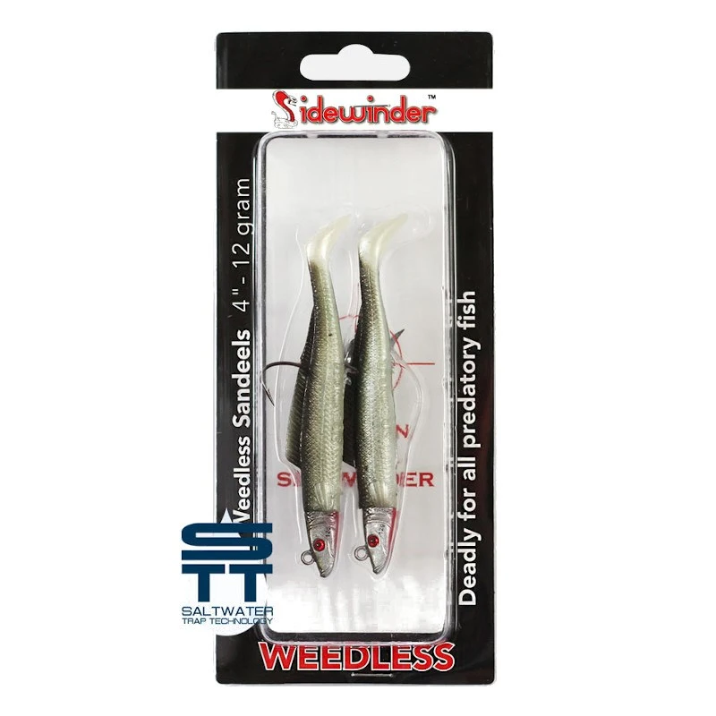 Weedless sandeel additions to the best selling Kiddy Sidewinder lure series. Each pack arrives with two sandeels, mounted and ready to go on a high quality Mustad jig head. Each lure colour option features a realistic pearlescent finish that gives maximum flash and appeal when they’re worked back through the water. They also have an inbuilt hook tube for tucking the hook point to achieve the weedless effect.