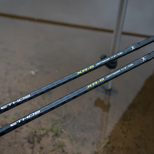 The Ethos XRS feeder range offers you the ultimate in lightweight feeder rods. Developed primarily with delicate silver fish like roach and skimmers in mind. The soft slim blanks and fine tips offer you the very best in bite detection and sensitivity. Perfect for casting smaller feeders from short to medium range. They feature super lightweight high quality XOG SG guides for improved casting performance and have cork and EVA composite handles.