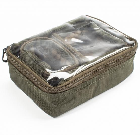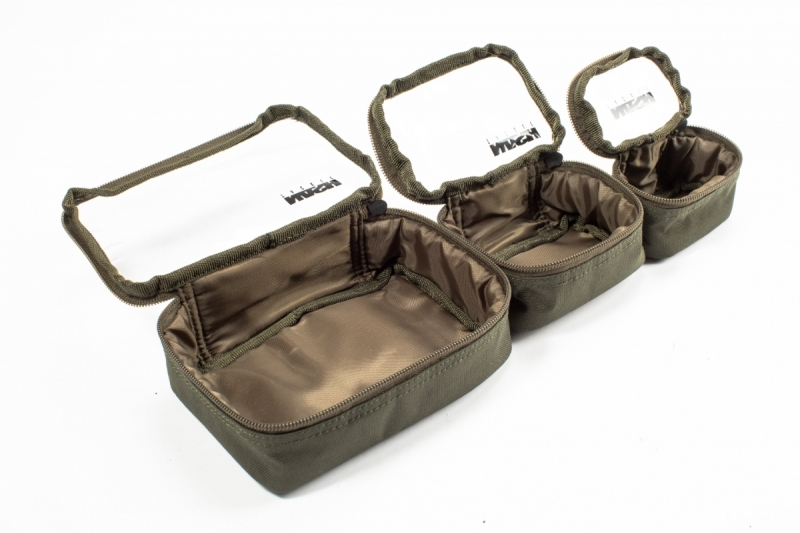 Three different sized zipped weatherproof pouches that cover a whole host of storage scenarios. Clear plastic lids allow you to see what’s inside at a glance without having to open everything to find the items you need. The main larger pouch can be used to house the two smaller ones.