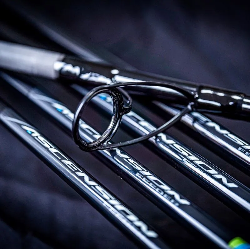 Preston’s Ascension feeder series aims to give you a high quality rod range designed to cover every eventuality you’ll face on commercial and natural venues alike. Created in conjunction with international match consultants Lee Kerry and Arnout Van De Stadt with an extensive testing and development cycle. There are 5 models to choose from. The shorter 3.2 and 3.4m options feature a soft action that makes them perfect for close range work targeting roach, skimmers. While the 3.6m 60g rod makes a brilliant all rounder with enough backbone to propel larger feeders, but enough tip sensitivity to cushion fish at close range. Finally the 3.8 and 4m offerings make ideal distance casting big water rods.