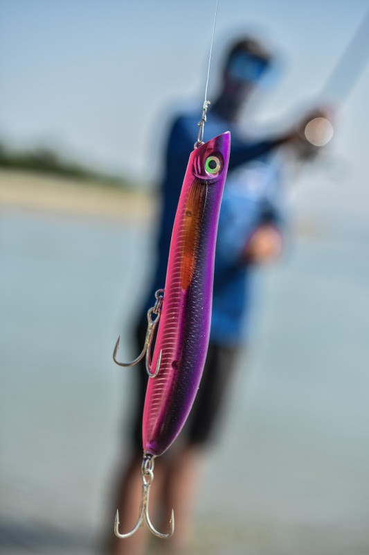 A superbly balanced surface lure designed for accurate long distance casting. With an appealing rolling action on the retrieve, and throwing plenty of activity and spray when twitched. Available in 6 attractive highly visible colours, and either 10cm, or 13cm sizes