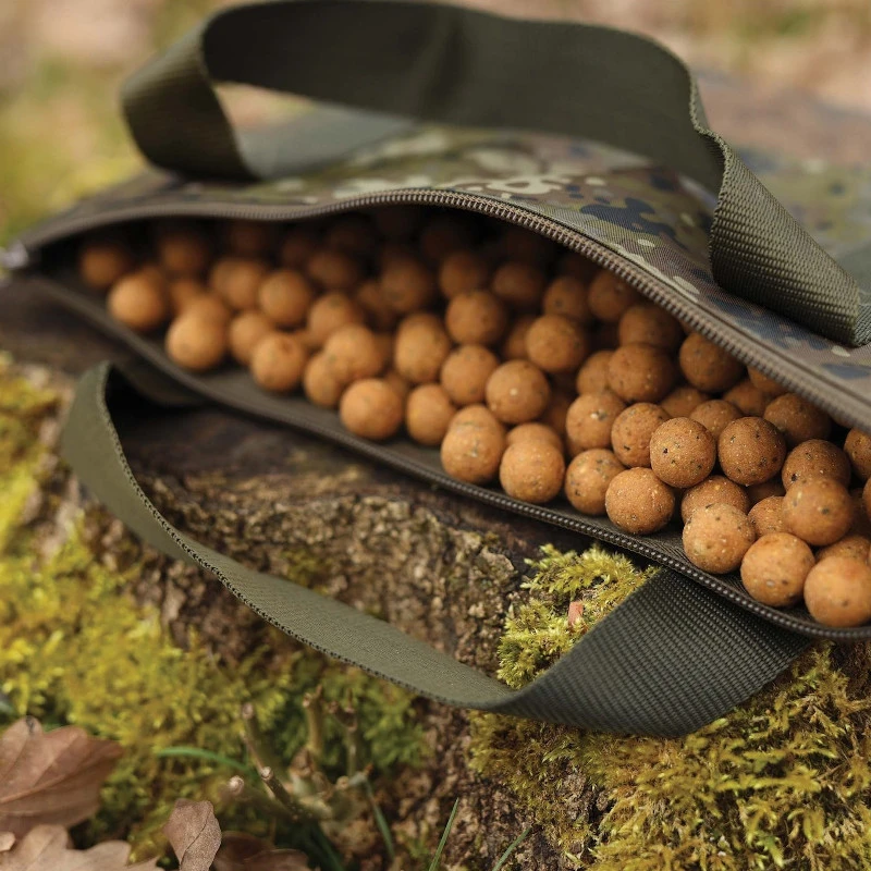 Just what you need for keeping your baits and allowing them to dry and harden up when your out on the bank. Manufactured with a 210D backed Camfleck upper that helps keep off overnight dew, and a mesh lower that will store up to 4Kg of boilies at once!