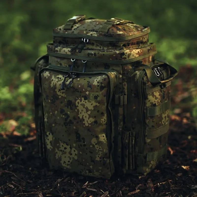 Featuring a generous main storage compartment with two full-sized pockets each side, with additional webbing and a large full-sized front pocket the perfect size for taking a large shallow tackle box. With storage loops located either side of the front that’ll take a few banksticks or a dismantled pod.
