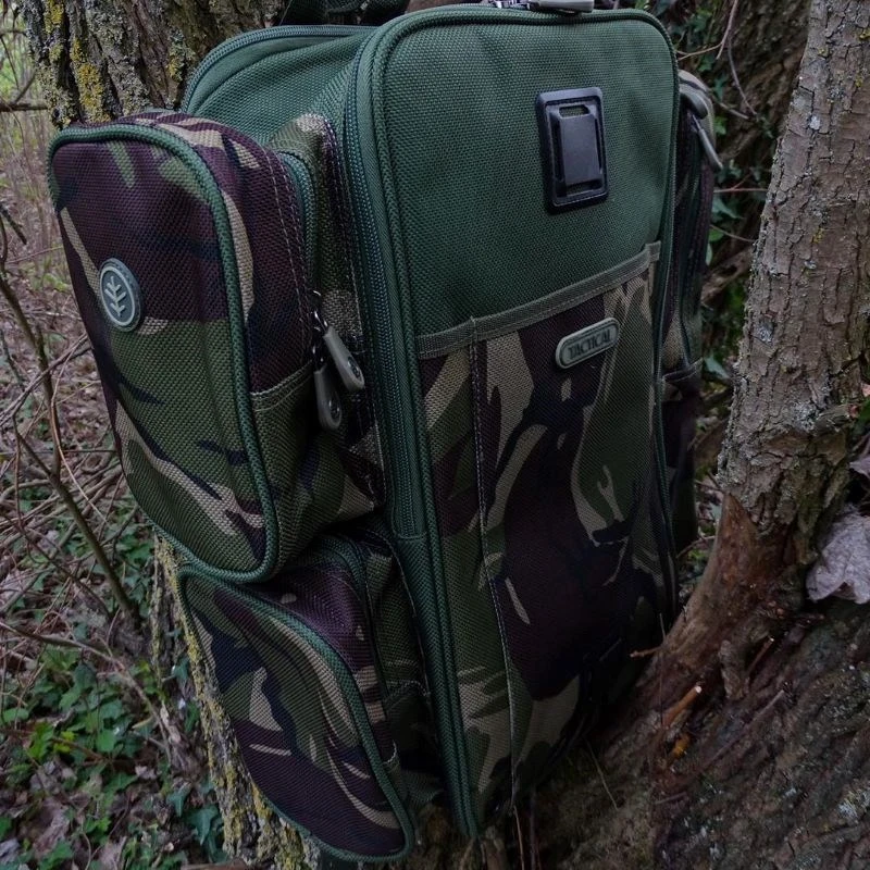 A well designed tough lightweight tackle transport system. Ideal for short day sessions and remaining mobile while allowing you to carry everything you need with ease on your back. Manufactured from rugged 1200D material, and featuring a generous main compartment, with two small side pockets on one side, and a full-length pocket on the other. A large pocket on the front will happily take a series of smaller bank sticks, or a dismantled pod. All the pockets and compartments are fitted with reliable easy pull bespoke zips.